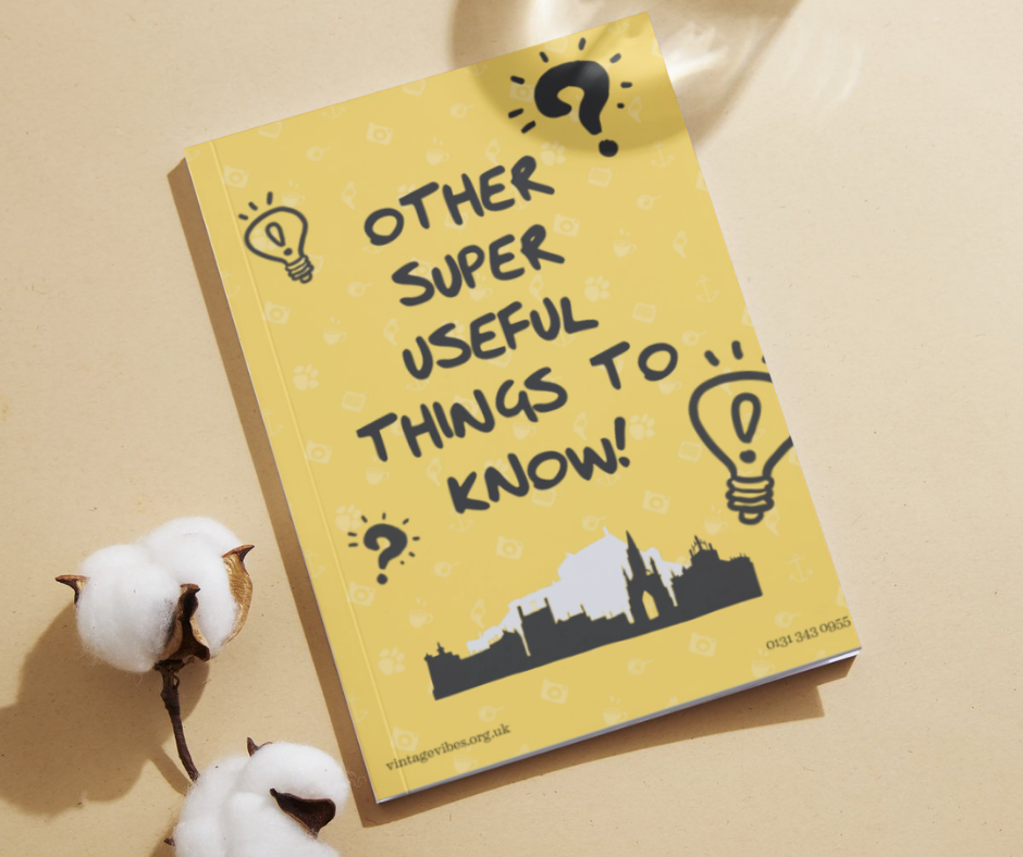 Today also marks the launch the first edition of our ‘Other Super Useful Things To Know’ Booklet, an idea developed in one of the VIP Voices committee sessions. The aim was to create a valuable, accessible, large font resource to help any older member of the Vintage Vibes community to find answers to the most common questions we receive which fit outside of the work of Vintage Vibes.